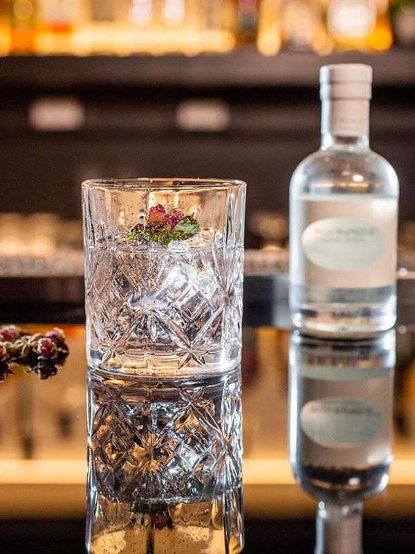Tanqueray Gin, Mastic, Rose liquor, Lemon Bitter, Ground Nutmeg, Dried Roses